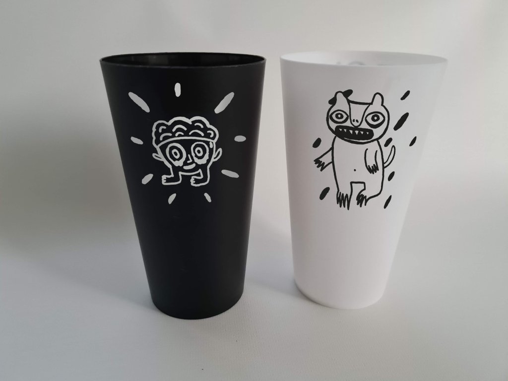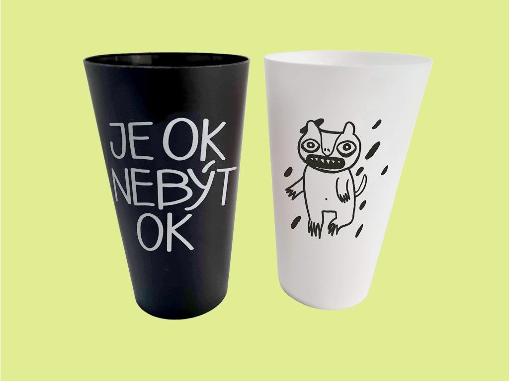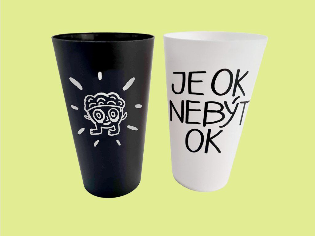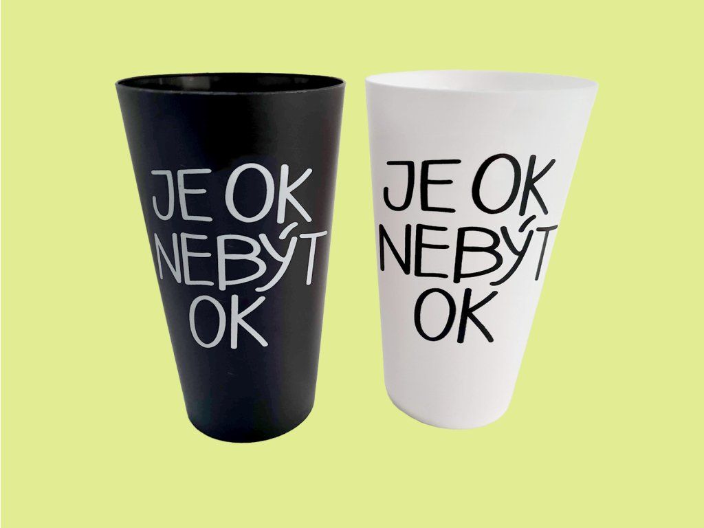 Již druhá sada originálních kelímků. Černý a bílý jako jin a jang, s ilustracemi talentované Anny Valouškové, které najdete i v námi vydané knize Na antidepresivech o antidepresivech. A hlavně kelímky se sloganem, který NĚCO vyjadřuje. JE OK NEBÝT OK je totiž jedním z hlavním sloganů naší kampaně, která nabourává mýty a předsudky v oblasti duševního zdraví a zároveň motivuje lidi k otevřenosti v otázkách vlastní duševní pohody.